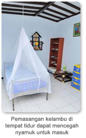 - Cegah nyamuk masuk dengan memasang kelambu/tirai/kasa nyamuk.