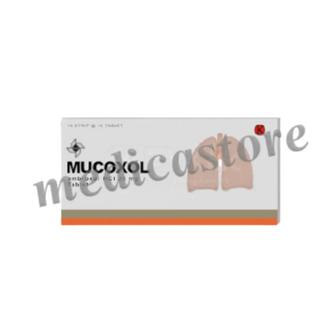 Mucoxol merupakan obat dengan kandungan zak aktif Ambroxol 30 mg dalam bentuk tablet yang mempunyai efek kerja sebagai mengobati penyakit saluran pernafasan akut & kronis yang berhubungan dengan sekresi bronkhial abnormal, terutama pada eksaserbasi (kambuhnya penyakit atau gejala penyakit secara mendadak) bronkhitis kronis, bronkhitis asmatik, asma bronkhial, terapi sebelum & sesudah operasi, & pada perawatan intensif untuk mencegah komplikasi paru.