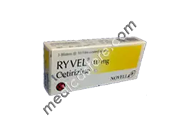 Ryvel merupakan obat dengan kandungan zak aktif Cetirizine HCl 10 mg dalam bentuk tablet yang mempunyai efek kerja sebagai obat untuk mengobati rinitis menahun dan musiman, rinitis alergi seasonal, konjungtivitis, pruritus, urtikaria idiopati kronis.