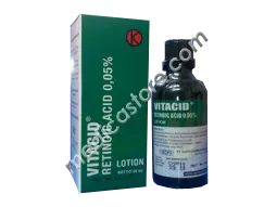 Vitacid merupakan obat dengan kandungan zat aktif Asam Retinoat / Retinoic acid dalam bentuk solution yang mempunyai efek kerja sebagai mengatasi akne vulgaris atau jerawat, mengurangi komedo, papul & pustul, hiperpigmentasi berbintik-bintik, kekasaran dan kerutan halus pada kulit yang mengalami photodamage. Melasma (penyakit yang ditandai dengan hiperpigmentasi kulit)