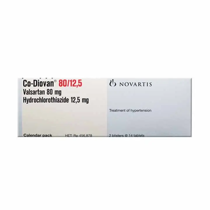 Co-Diovan merupakan obat dengan kandungan zak aktif Valsartan 80 mg, Hidroklorotiazida 12.5 mg dalam bentuk tablet yang mempunyai efek kerja sebagai obat untuk menurunkan tekanan darah tinggi pada penderita hipertensi dan gagal jantung kongestif.