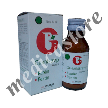 Guanistrep merupakan obat dengan zak aktif yang tiap 5 ml mengandung : Kaolin 986 mg, Pektin 40 mg dalam bentuk suspensi yang mempunyai efek kerja sebagai pengobatan simtomatik pada diare dimana tidak diketahui penyebabnya dengan jelas.