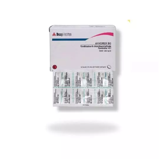 Anvomer B6 merupakan obat dengan kandungan zak aktif Piratiazin Kloroteofilin 40 mg, Vitamin B6 30 mg dalam bentuk tablet yang mempunyai efek kerja sebagai mengatasi mual setelah pembedahan, mual pada saat hamil & mabuk perjalanan.