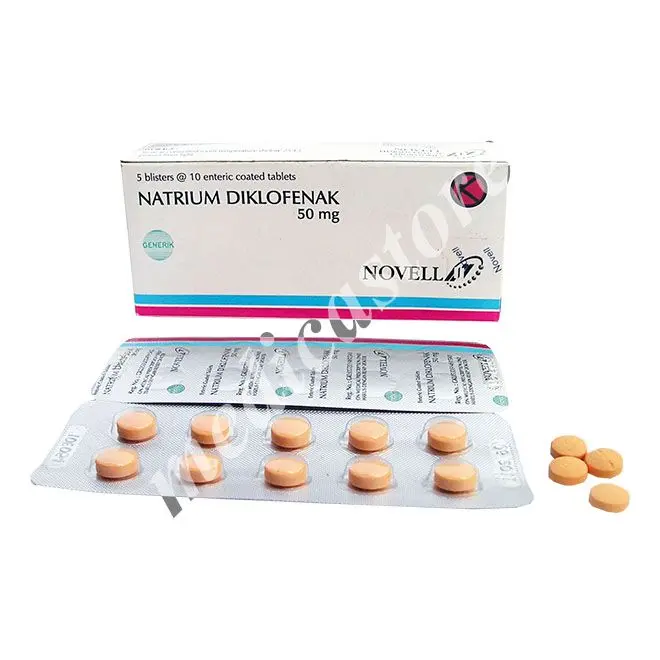 Diclofenac Sodium merupakan obat golongan Anti-inflamasi Nonsteroid (AINS) dalam bentuk tablet yang mempunyai efek kerja sebagai meredakan nyeri dan peradangan, nyeri pada beberapa kondisi, seperti nyeri haid, nyeri pascaoperasi, atau nyeri sendi akibat radang sendi (arthritis). Meredakan nyeri gigi ringan hingga sedang. Bentuk peradangan & degeneratif reumatisme, artritis reumatoid, ankylosing spondylitis, asteoartrosis & spondilartritis. Sindroma nyeri pada rulang belakang. Reumatik bukan pada sendi. Serangan gout akut.