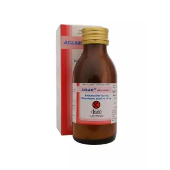 Aclam merupakan obat dengan kandungan zat aktif Amoxicillin 125 mg, Kalium Klavulanat 31,25 mg dalam bentuk serbuk yang mempunyai efek kerja sebagai obat untuk infeksi saluran pernafasan bagian atas : tonsillitis, sinusitis, otitis media. Infeksi saluran bagian bawah : bronchitis akut dan kronis, pneumonia, empisema, abses paru-paru. Infeksi kulit dan jaringan lunak : abses selulitis, infeksi luka, sepsis intra abdomen. Infeksi urogenital : sistitis, ureteritis, pielonefitis, abortus septic, infeksi pelvic, chancroid gonorrhoeae. Infeksi lain seperti : osteomielitis, septicemia, peritonitis, infeksi sesudah operasi, endocarditis