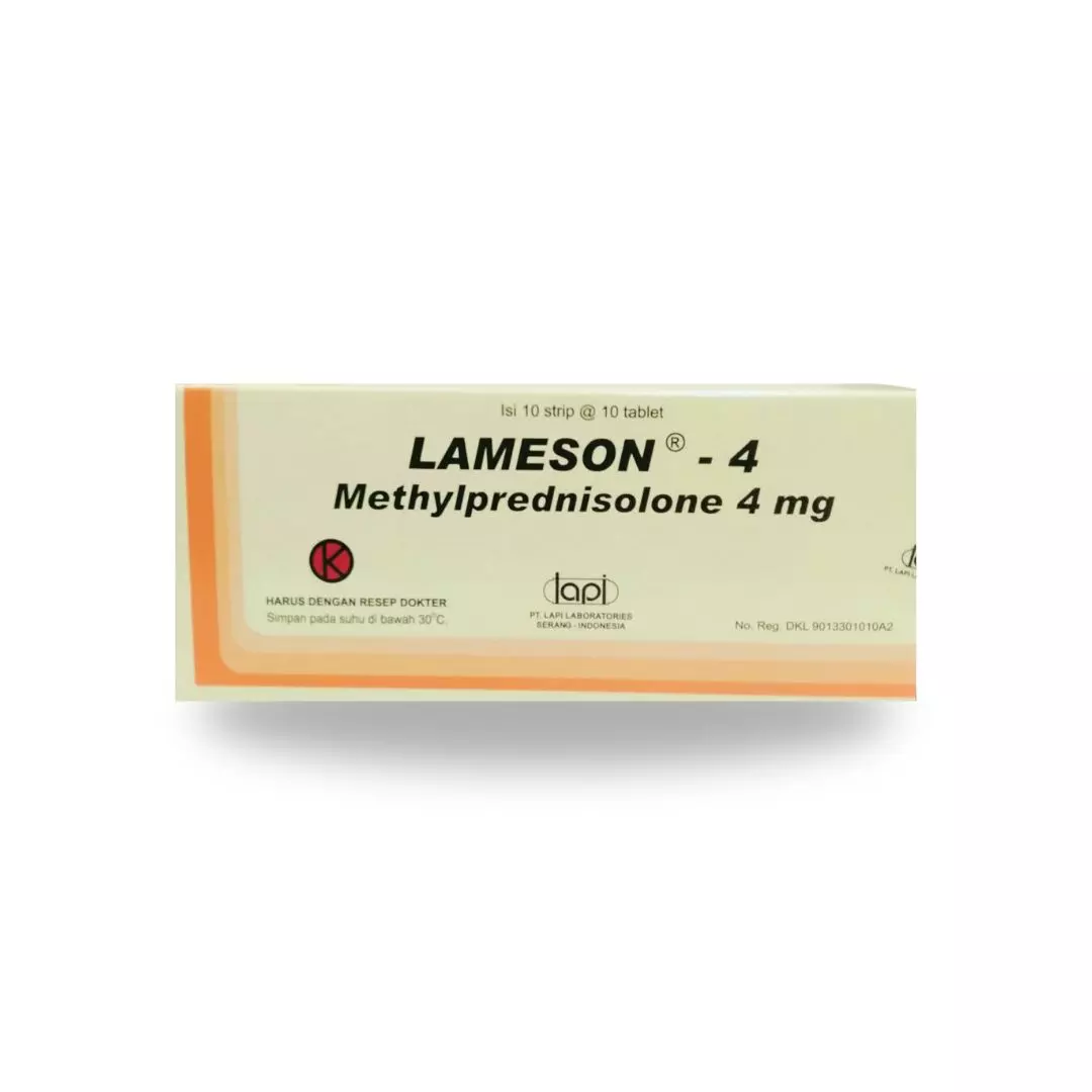 Lameson merupakan obat dengan kandungan zak aktif Methylprednisolone 4 mg dalam bentuk tablet yang mempunyai efek kerja sebagai obat untuk mengatasi kondisi alergi & inflamasi, penyakit reumatik yang memberi respon terhadap terapi kortikosteroid, penyakit kulit & saluran napas, penyakit endokrin, penyakit autoimun, gangguan hematologik, sindroma nefrotik.